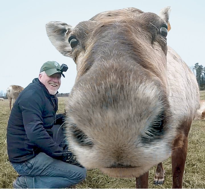 Icontributetothethinkingaroundnewideastoimprovehowweuseournaturalresources.Ispendalotoftimeinanoffice,butmyfavoritetimesarespentoutdoorsstudyingbirds,bats,owls,mice,andothercritters— especiallyatnight.I’vebeenattackedinonewayoranotherbymoreowlsthanmostpeoplehaveeverheardof!Here,I’mworkingwitha caribou.