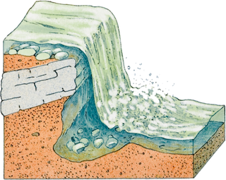 Elríoerosionaanteslarocablanda.Yformaunescalónensu cauce.
