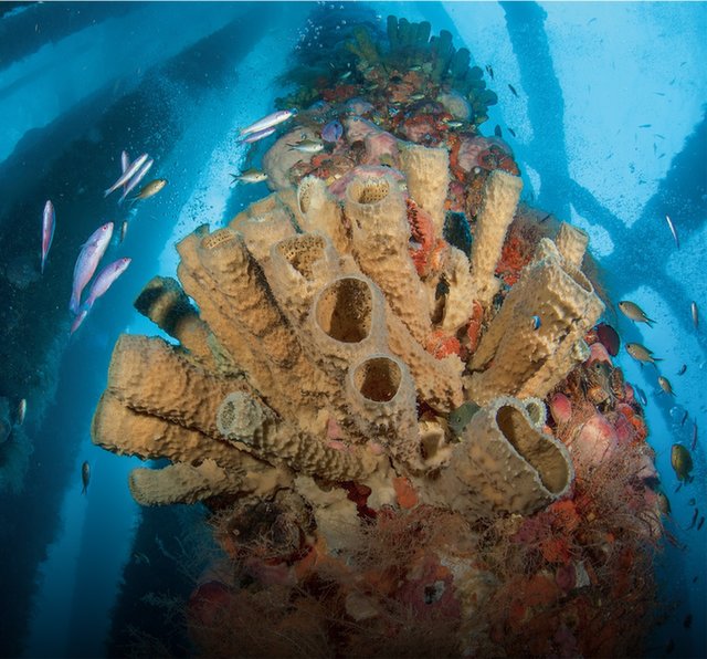 Lasesculturasnosonlaúnicaformadecrearunarrecifeartificial.¡Lasplataformaspetrolíferasabandonadastambiénpuedenhacerlasvecesdearrecifes!Lasplataformaspetrolíferassonenormesestructurasconstruidasagranprofundidad.Normalmenteseconstruyensobrelaplataformacontinentalqueestácompuestadearcilla,barroyarena.Allíesdondehacenlasperforaciones petrolíferas.