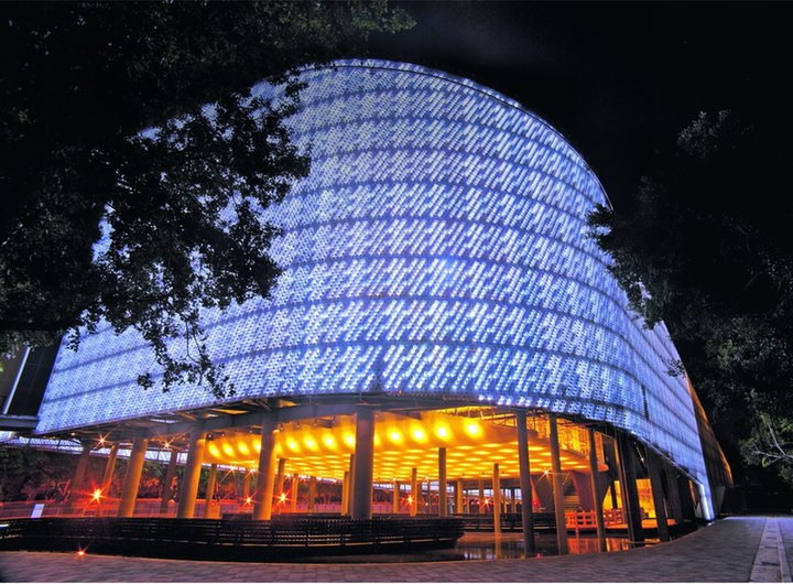 LaenergíasolardeldíahacefuncionarlossistemasdeiluminaciónLEDdelEcoArkdurantela noche.