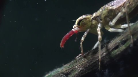 Ensufasedeninfa,estalibélulatieneunaformaespecialdecazar.Tienedosarticulacionesensulabioinferior,unaenlabaseyotraenelcentro.Estadisposiciónlepermiteplegarellabiodebajodelacabezacuandonoestácazando.Alverunapresa,proyectaellabiohaciadelanteylaapuñalaconsusafiladas púas.