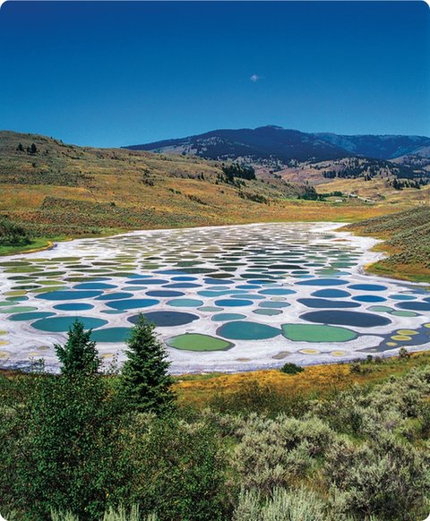 EllagoSpottedseformaporelaguaembalsadaenunadepresióndeundesiertodeCanadá.Elaguadellagonotienepordóndeescapar.Aélfluyenaguasdelluviaydedeshielocargadasdesalesminerales.Ellagonotiene salida.
