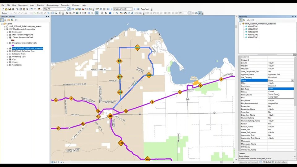 Myfocusismappingtrails.InMichigan,therearemorethan19,300kilometers(12,000miles)oftrails.Thetrailsareusedformanythings,suchashiking,bicycling,horsebackriding,skiing,andsnowmobiling.Theyarelocatedonstateandnationalforestland,stateparks,andstaterecreation areas.