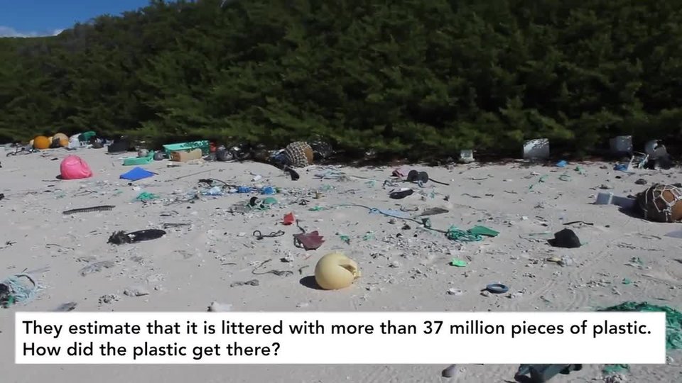 HendersonIslandisatiny,uninhabitedisland.ItsitsinthemiddleofthePacificOcean.Thenearestmajorpopulationcenterissome4,800kilometers(3,000 miles)away.Itishalfthesize ofManhattan.Yet,morethan19tonsoftrashlitteritsbeaches,mostofit plastic.