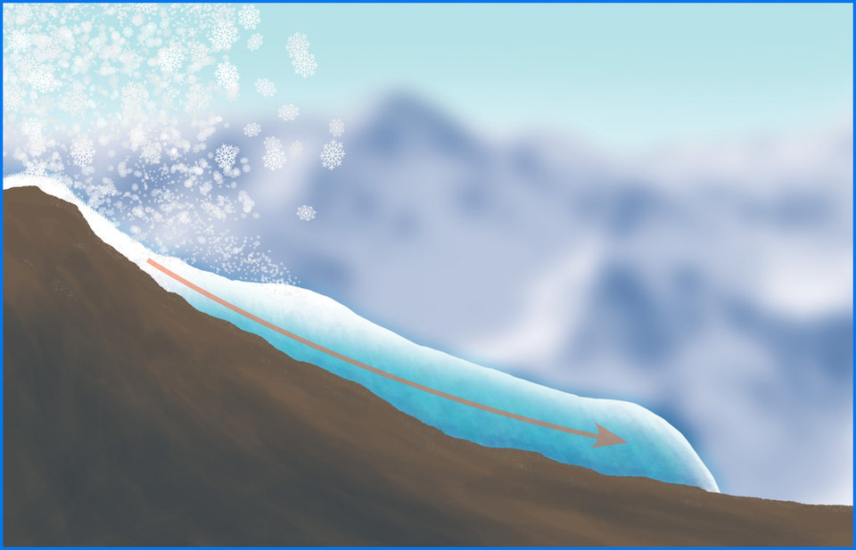 How?Closeyoureyesandimagineasinglesnowflake.Itdoesn’tweighverymuch.Nowimaginemillionsandmillionsstackedontopofeachother.Whathappenstothatsnowflakeatthebottom?Thepressureandweightofallthesnowsquishesdowntoform“firn.”Overdecades,firncompressesintodenseglacialice!Glacialiceissohardthat,whenitmovesovertheland,itcanscrapeandsmoothrock—justlikesandpaper does.