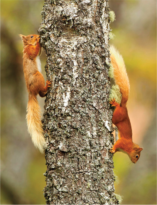 Asyoucontinueyourhike,youhearasound:Clickety,clickety,clickety.It’sthedistinctsoundoftinyclawsontreebark.Twosquirrelsarechasingeachotheraroundatree trunk.