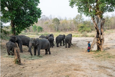 Hevenidoaestudiarcómocuidanaloselefantes.Yosoyetnobotánico.Estudiolaformaenquelagenteusalasplantasensu entorno.