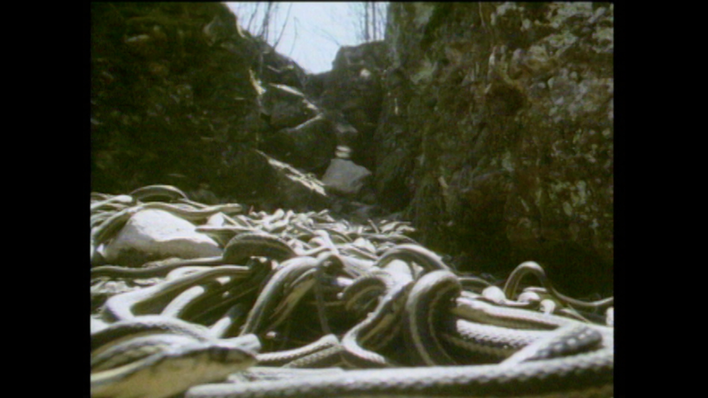 InCanada,it’swinter.Red-sidedgartersnakesarehibernating.Thismeanstheyaresleeping.Theysleepingroups.Theystayundergroundtostaywarm.Inspring,itgetswarmer.Thenthesnakeswakeup.Theyleavetheirdens.Theyslitheroutoftheground.