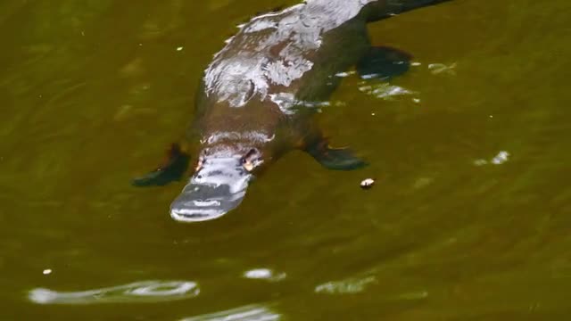 Witheyesclosed,thisplatypusdivesunderwater.Itfindsatastywormto eat