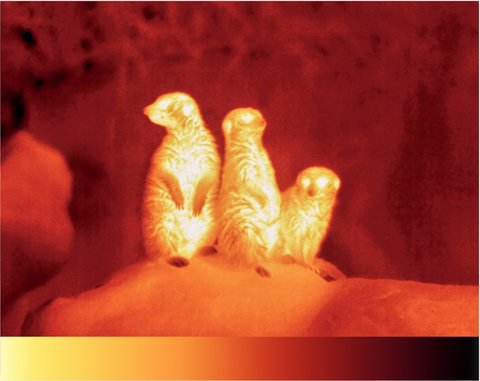 Lookattheimageofahandholdingalizard.Thebrightredofthehandshowsawarmbodytemperature.Thisistrueeventhoughtheairarounditiscooler.Thelizardshowsupmostlyasblue.Beforebeingheld,itwasdarkblue,likethebackground.Itsbodytemperaturewasthesameastheairaround it.