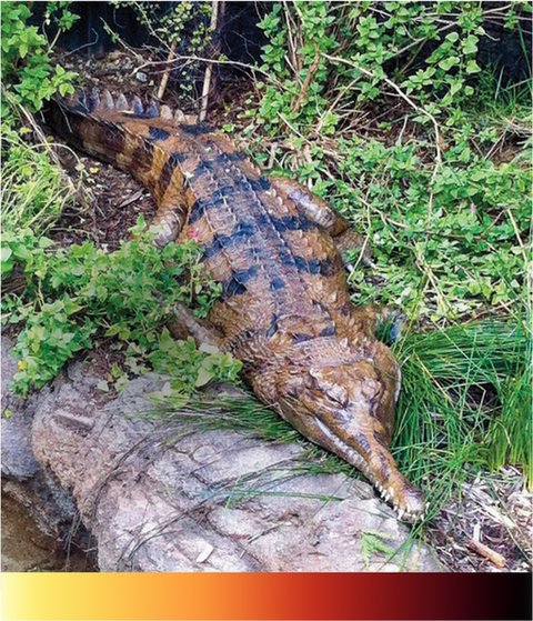 Thisgharialsoaksupthesun’srays.Thenitstemperaturebeginsto rise.